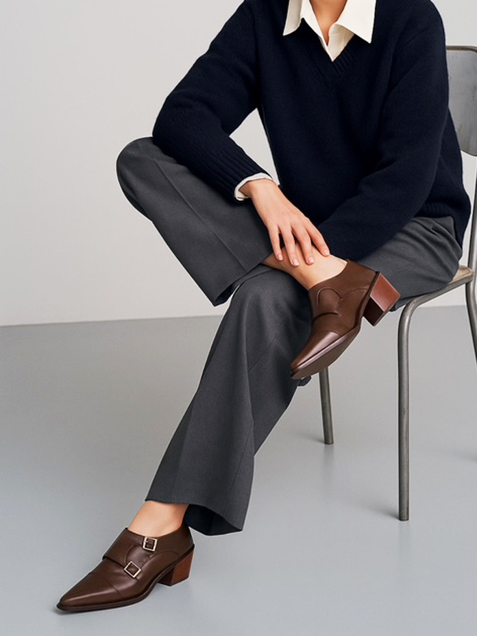 עוצמה רכה – הגוון החום והעור החלק מוסיפים חום ונגישות לסילואט הגברי-נשי.