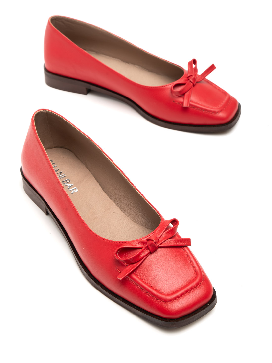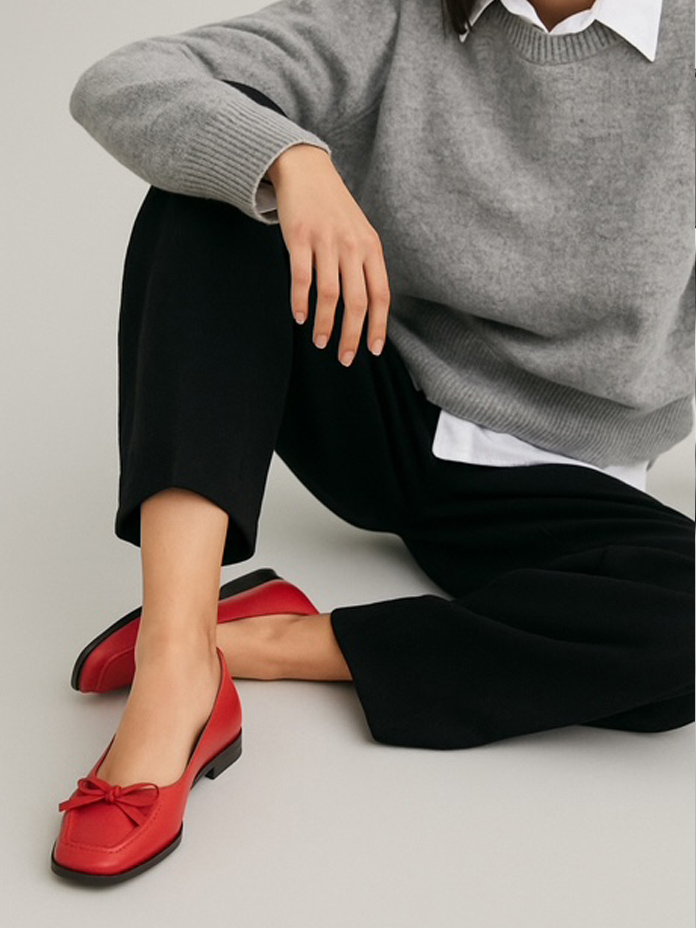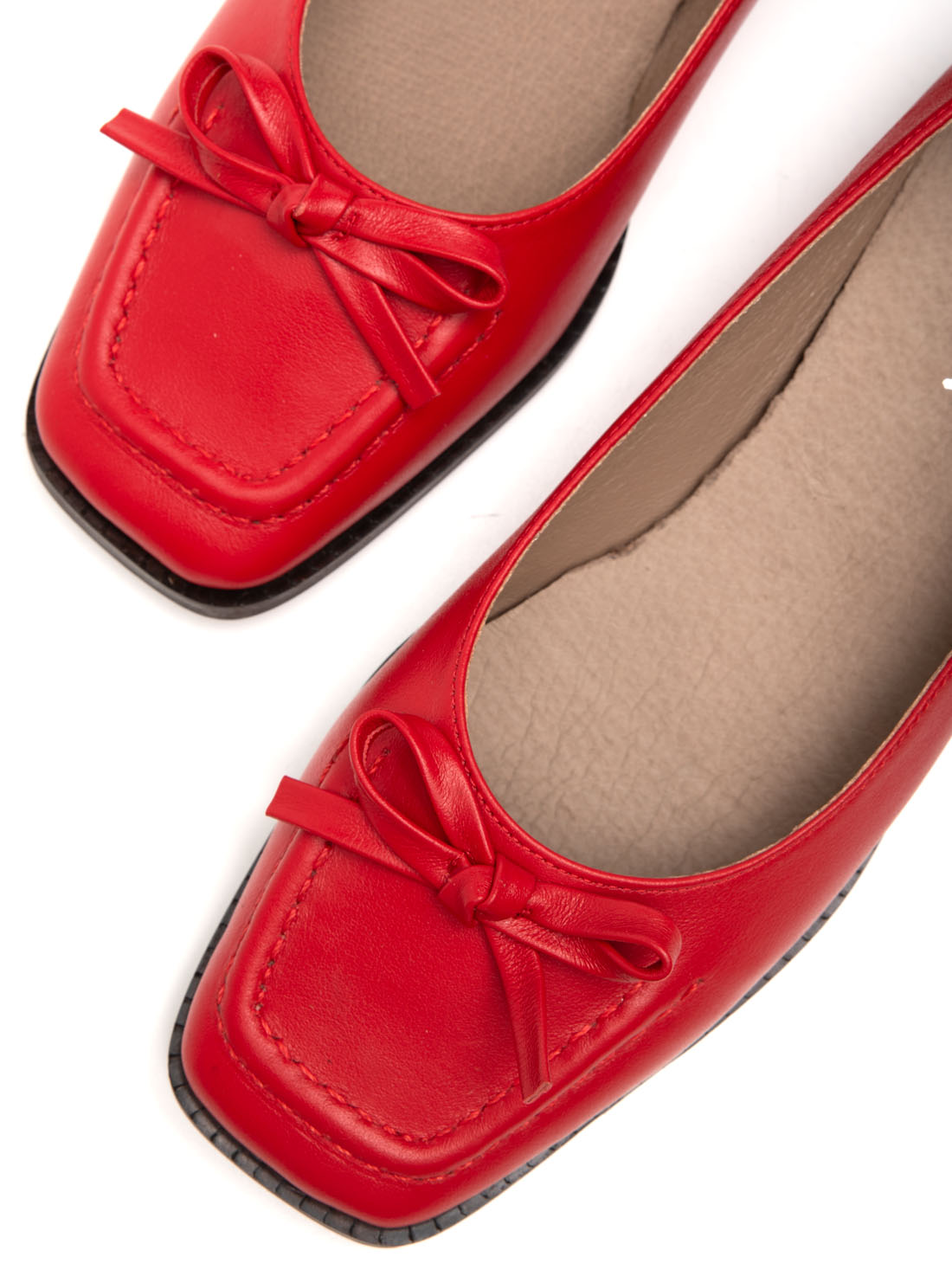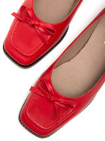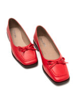 קו קלאסי עם נגיעה רכה. הפפיון הקטן בחזית הוא הפרט שעושה את ההבדל – לא צועק, לא מוגזם, בדיוק במקום הנכון. הבוהן המרובעת נותנת נוכחות מודרנית, והעור החלק (באדום חי או בשחור פטנט מבריק) מוסיף אלגנטיות טבעית. התפירה מוקפדת והקו נקי – אין כאן עודף.