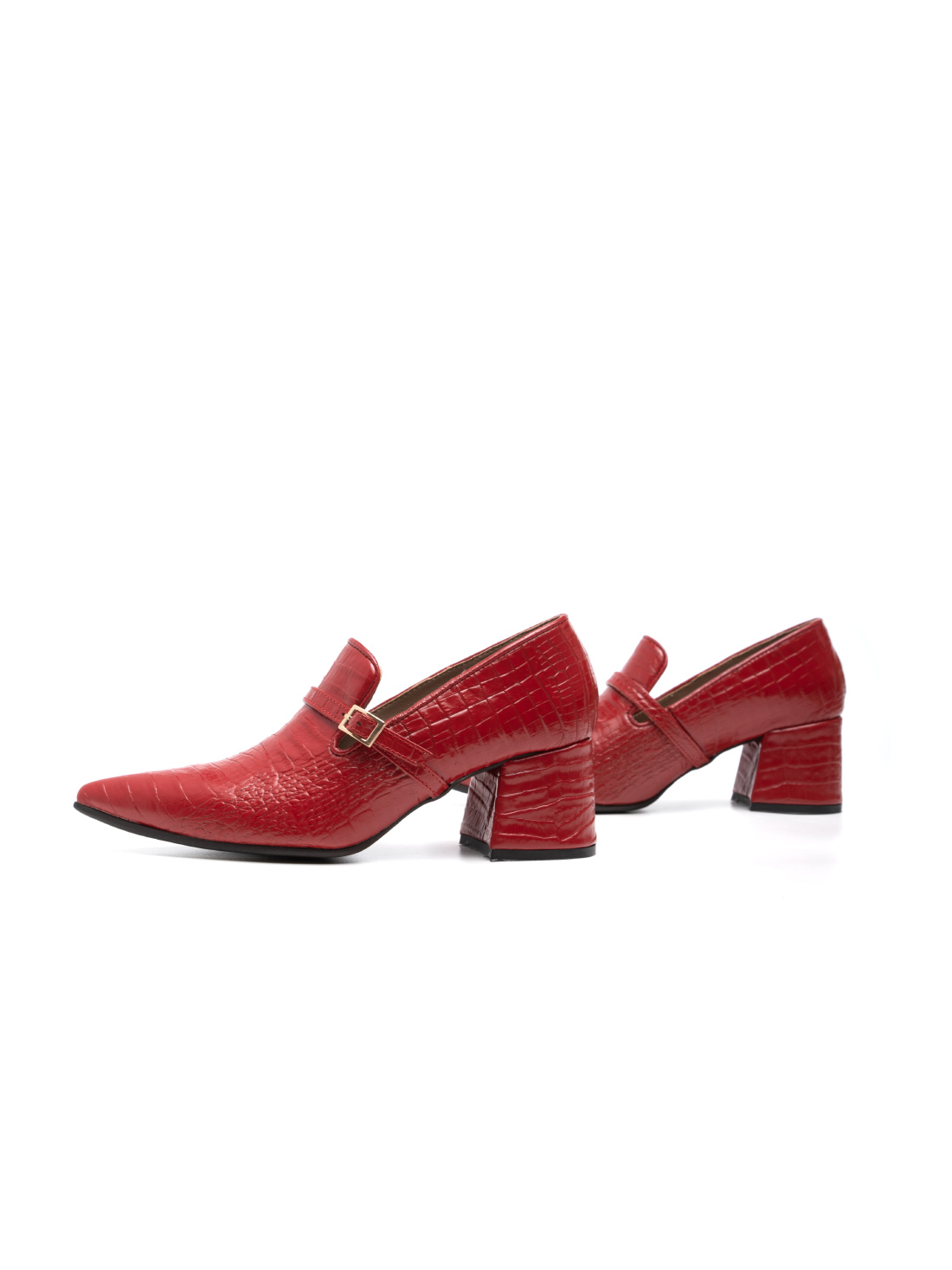 ליבי – נעל מחודדת עם אבזם בגוון אדום
