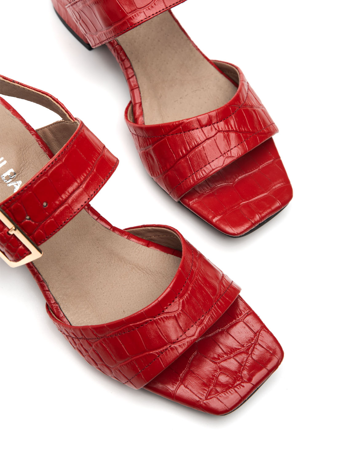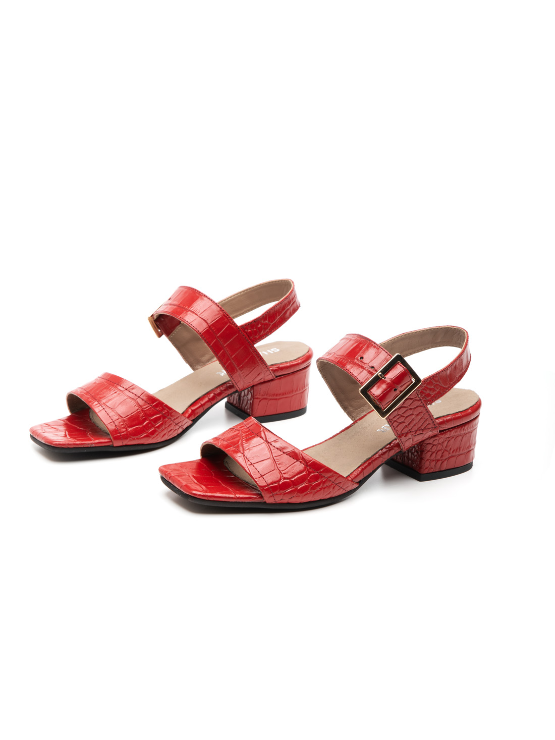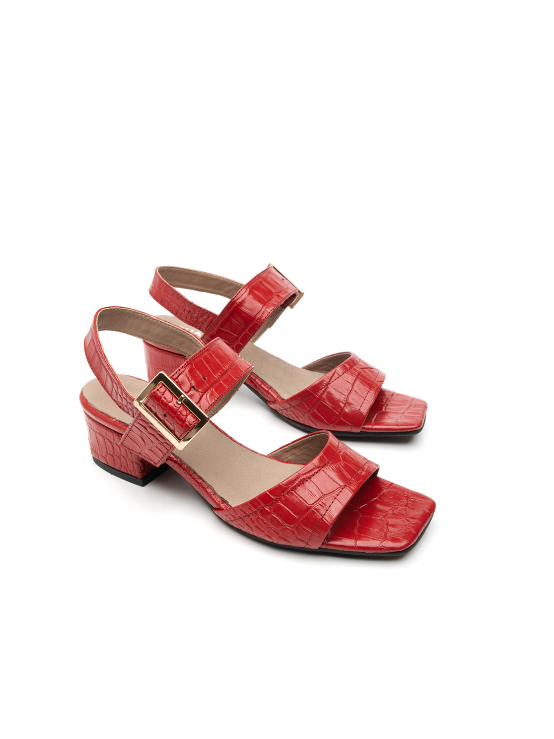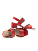 סנדל עם אמירה אישית בגוון אדום עז, נוח ומרשים כאחד. העיצוב המיוחד בדוגמת קרוקו מבריק מעניק לסנדל מראה שמושך מבטים, והעקב הנמוך (4 ס"מ) עם האבזם המוזהב המתכוונן מבטיחים לך נוחות ויציבה זקופה.