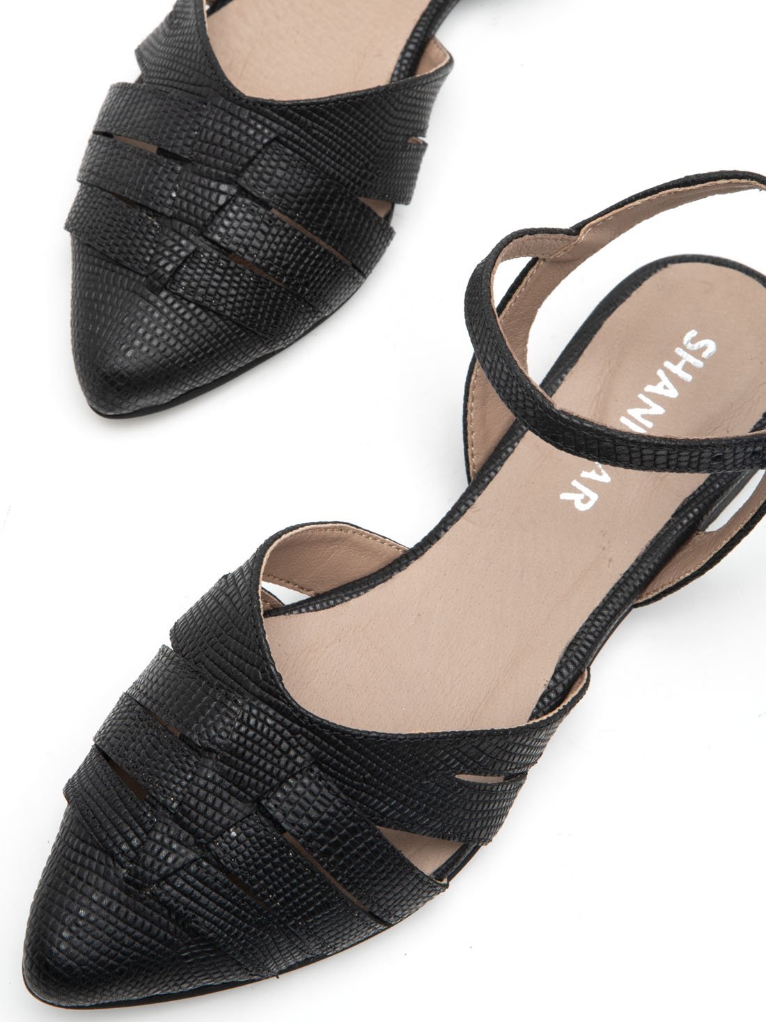 העור המעוטר בטקסטורה עשירה יוצר משחק יפה של אור וצל, בעוד שהרצועה הדקיקה בקרסול מבטיחה התאמה מדויקת לכל רגל. העקב השטוח נותן לך את החופש לרוץ על היום בלי לחשוב פעמיים.