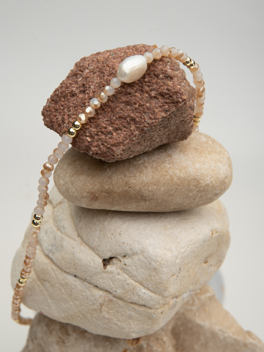 יש משהו מרגיע בנגיעה של אבן טבעית על העור. השרשרת הזו מביאה את השקט של הטבע ישר אלייך – אבני חן עדינות בגוונים חמים, שמשתלבות עם פנינת מים מתוקים אמיתית שמוסיפה נגיעה של אלגנטיות רכה.